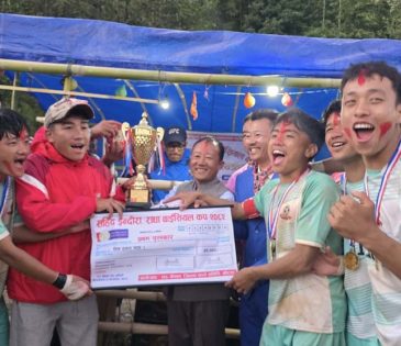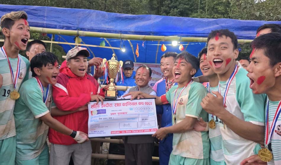 खोटाङ, ३ कातिक । दिक्तेल रुपाकोट मझुवागढी नगरपालिका–७ दोर्पाचिउरीडाँडामा आयोजित ‘शहीद इन्दिरा–राधा प्रथम वाईसिएल कप फुटबल प्रतियोगिता–२०८२’को उपाधि साकेला गाउँपालिका–२ रतन्छाले चुमेको छ । ‘विचारसँगै ख...