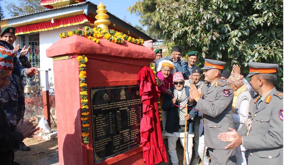 खोटाङ, ९ माघ । सशस्त्र प्रहरी बल नेपाल नं. ७ गुल्म, हलेसी खोटाङले आफ्नो गुल्म स्थापनाका लागि निःशुल्क जग्गा दिने १७ जना जग्गादातको नाम शिलालेखमा राखेको छ । सशस्त्र प्रहरीको २५ औँ स्थापना दिवसको अवसर पारेर नं. ७ गुल्म हलेसी खोटाङले करोडौँ मू... ...थप समाचार