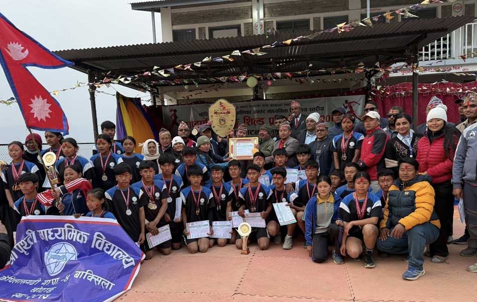 खोटाङ, २९ माघ । केपिलासगढी गाउँपालिकाले आयोजना गरेको माध्यमिक विद्यालयस्तरीय पाँचौँ राष्ट्रपति रनिङ शिल्ड प्रतियोगिताको उपाधि पृथ्वी माध्यमिक विद्यालय बाक्सिलाले जितेको छ । गाउँपालिकाभित्र सञ्चालित नौ...
