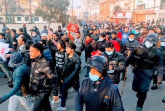 काठमाडौँ, १४ माघ । प्रधानमन्त्री केपी शर्मा ओलीको सिफारिसमा राष्ट्रपतिले गरेको संसद विघटनको विरोधमा प्रचण्ड–माधव समूहका संसदहरु आज धर्नामा बसेका छन् । माइतीघर मण्डलामा उनीहरु धर्नामा बसेका हुन् । संसद विघटन गर्न पाइँद...