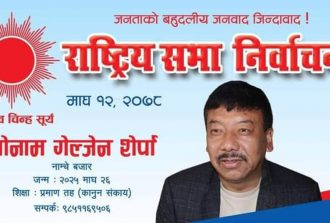 खोटाङ, १२ माघ । राष्ट्रिय सभा निर्वाचनमा प्रदेश १ बाट नेकपा (एमाले) का उम्मेदवार सोनाम गेल्जेन शेर्पा निर्वाचित हुनुभएको छ । बुधबार भएको निर्वाचनमा सत्तारूढ गठबन्धनका उम्मेदवारलाई हेमराज राईलाई पराजित गर्दै शेर्पा विजयी ...