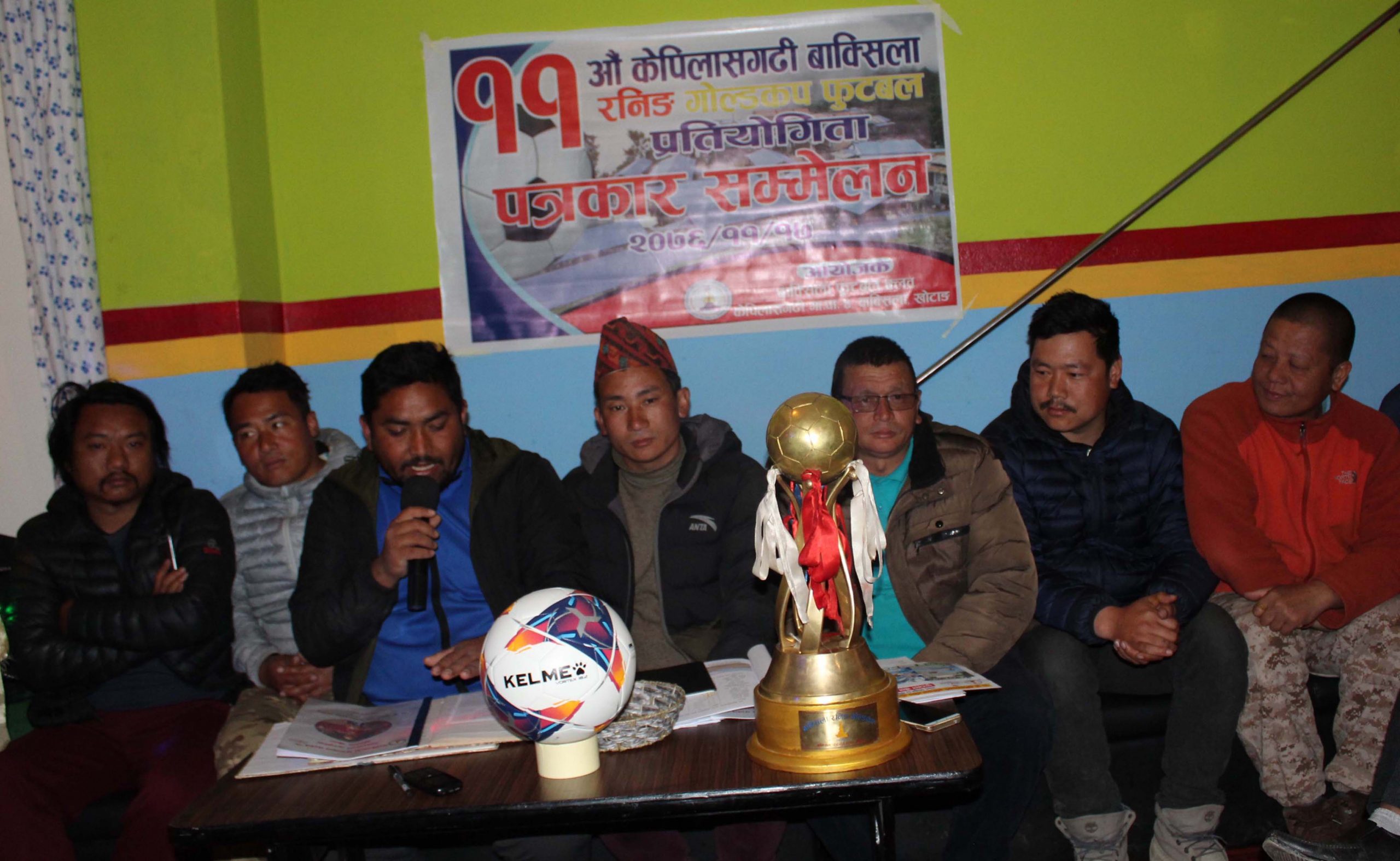 आयोजक बाक्सिला फुटबल क्लवले शनिबार दिक्तेलबजारस्थित उज्यालो क्याफेमा पत्रकार सम्मेलन गरेर ‘११ औँ केपिलासगढी बाक्सिला रनिङ गोल्डकप’को खेल तालिकासमेत सार्वजनिक गरेको छ । केपिलासगढी गाउँपालिका–४ बाक्सिलाबजारस्थित पृथ्वी माविको खेलमैदानमा सञ्चालन हुने गोल्डकपको विजेता टोलीले रु दुई लाख ११ को साथमा गोल्डकप, मेडल र प्रमाणपत्र तथा उपविजेता टोलीले रु ९९ हजार ९११ नगदको साथमा मेडल र प्रमाणपत्र हात पार्ने क्लवका अध्यक्ष शिवकुमार राईले बताउनुभयो ।
