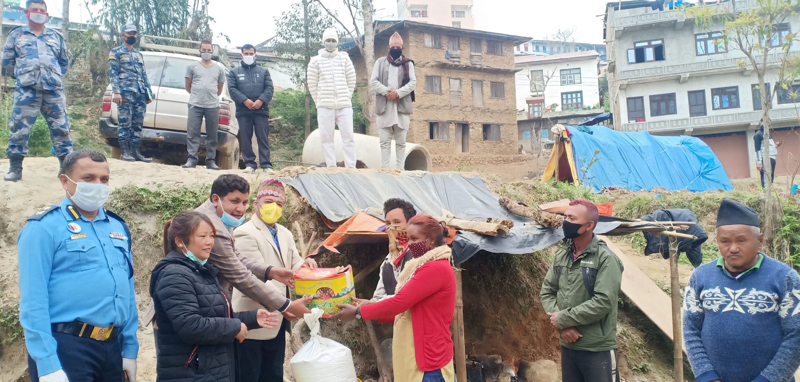 जिल्ला प्रशासन र प्रहरीको सहकार्यमा नगरपालिकाले जनताको दैनिक जिबनलाई सहज बनाउने काम गरेको बताउदै मेयरले रिजालले भन्नुभयो,लकडाउनकोे अबधिमा नआतिनुस सरकारलाई सघाउन आ–आफ्नो घरमा बस्नुस समस्या परे हामि तपाईकै घरमा आउने छौ । आफै खाद्यान्न सामाग्री लिएर मेयर उपमेयरको टोली पोखरी स्कुल नजिक सडक निर्माणमा खटिएका मजदुरको क्याम्पमा पुगे पछि मजदुरहरुको अनुहारमा खुसि छाएको थियो।