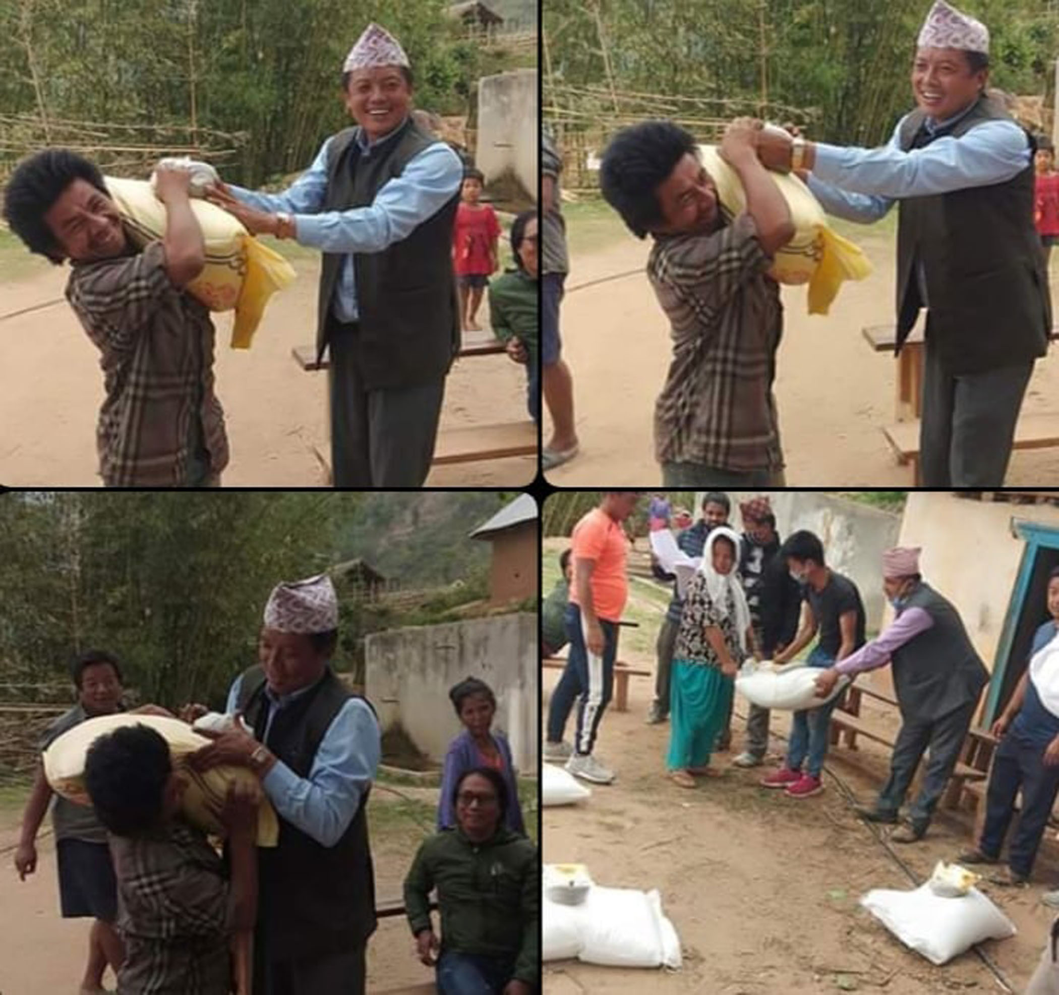 कोरोना भाइरस (कोभिड–१९)को सङ्क्रमण फैलिन नदिन सरकारले लागू गरेको ‘लकडाउन’का कारण दुई महिनादेखि दैनिक ज्यालादारी काम गर्न नपाउँदा हातमुख जोड्न नसक्ने अवस्थामा पुगेका परिवारलाई चामल २५ केजी, तेल १ पोका र १ केजी दाल उपलब्ध गराइएको वडाध्यक्ष लोकेन्द्र राईले बताउनुभयो ।