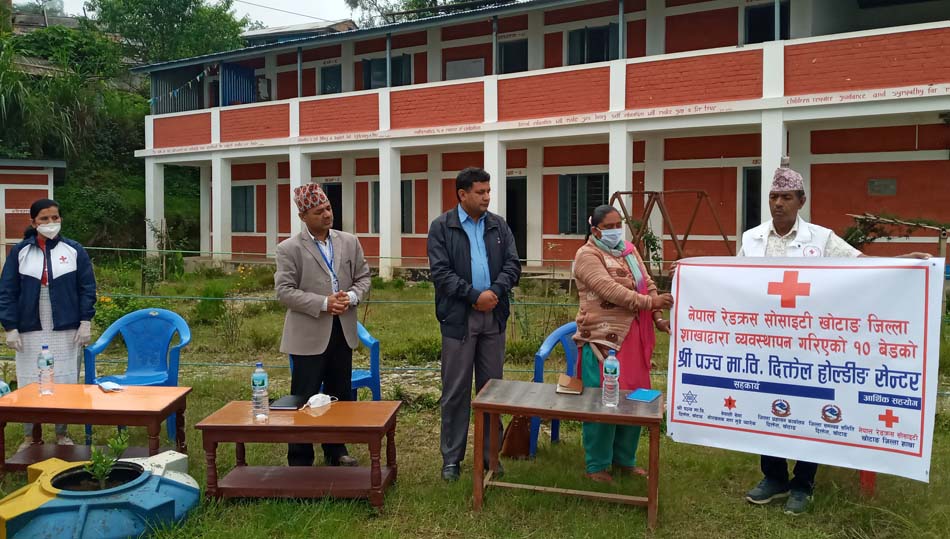 खोटाङ, १९ असार । नेपाल रेडक्रस सोसाइटी जिल्ला शाखा खोटाङले दिक्तेलमा दश शैयाको होल्डिङ सेन्टर सञ्चालनमा ल्याएको छ । विदेशबाट जिल्ला भित्रिने व्यक्तिलाई पिसिआर रिपोर्ट नआएसम्म राख्न रेडक्रसले दिक्तेलको पञ्च माविमा दश शैयाको होल्डिङ सेन्टर सञ्चालनमा ल्याएको हो ।