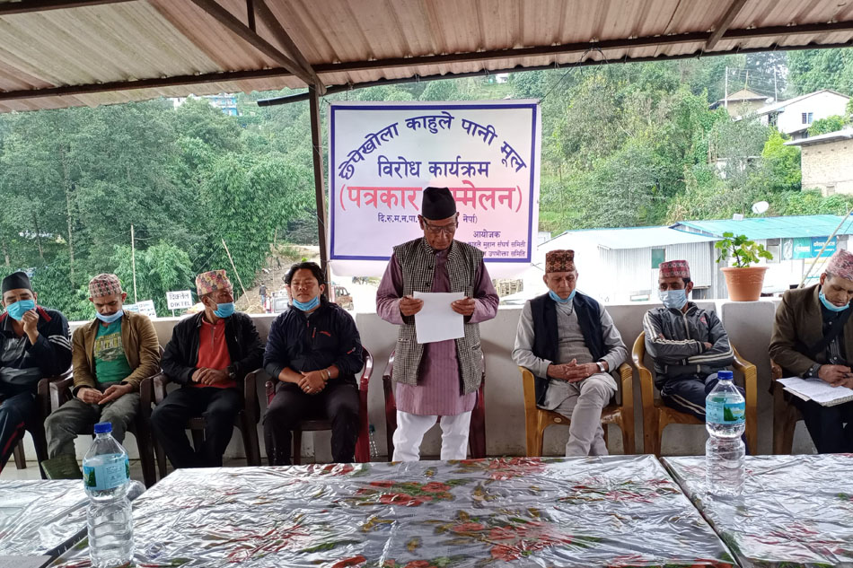 खानेपानी आयोजनामा पानीको मुहान उपभोग गरिरहका सोल्मा र नेर्पाका स्थानीय बासिन्दाले आफूहरुका माग पूरा नगरेसम्म कुनै पनि हालतमा पानी लैजान नदिने शुक्रबार दिक्तेलमा पत्रकार सम्मेलन गरेर जानकारी दिएका छन् । खानेपानी निर्माण उपभोक्ता समितिले स्थानीय बासिन्दासँग गरेको १२ बुँदे सम्झौता बिपरित छेपेखोला र काहुले मुहानकोसमेत पानी लाने तयारी गरेकाले अवरोध गरिएको छेपेखोला काहुले मुहान सङ्घर्ष समितिका संयोजक हर्कबहादुर पराजुलीले बताउनुभयो ।