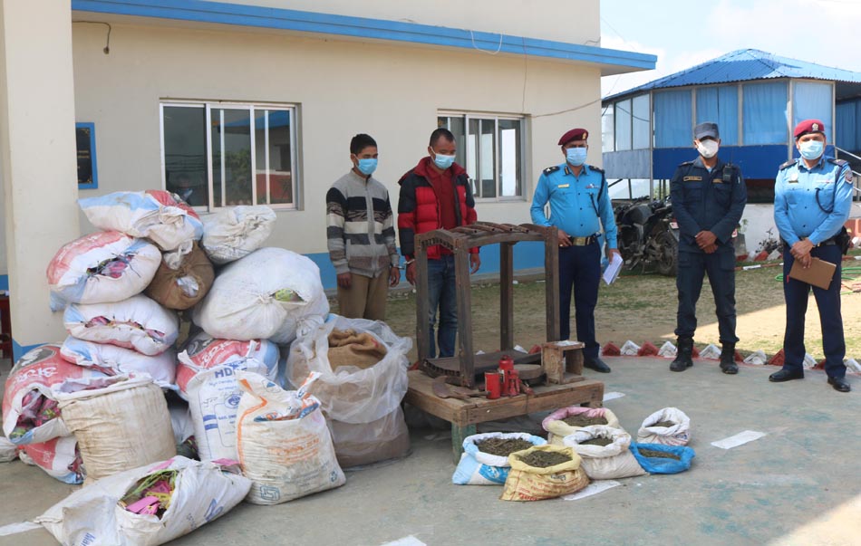 पक्राउ परेका राई र नेपालीको उद्योगबाट सात केजी गाँजा, १५ बोरा प्याकिङ गरिएको भाले ब्राण्डको सुर्ती, दुई बोरा खुला सुर्ती, दुई बोरा चुना, एक बोरा लागु औषध प्याकिङ गर्ने प्लाष्टिक, एक थान लागु औषध बनाउने मेसिन, दुई बोरा लागु औषध प्याकिङ गरिएको प्याकेटमा टालिने स्टिकर, दुई थान फलामे दाउ र एक थान अचानो बरामद गरिएको प्रहरीले जनाएको छ । पक्राउ परेका दुवै जनालाई प्रहरीले जिल्ला प्रहरी कार्यालयमा ल्याएर बिहिबार पत्रकार सम्मेलनमार्फत सार्वजनिक गरेको छ ।
