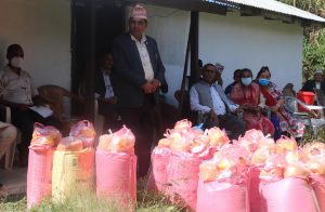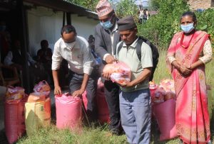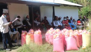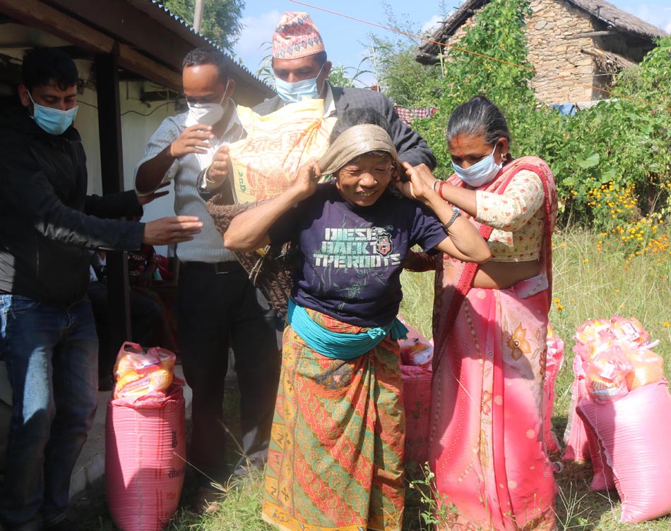 गाउँपालिकाभित्र बसोबास गर्दै आएका ४१५ घर एकल महिला, दलित र गरिब परिवारलाई रु नौँ लाख ६३ हजार बराबरको राहत सामग्री उपलब्ध गराइएको गाउँपालिका प्रमुख लीलानाथ निरौलाले बताउनुभयो । “दैनिक रुपमा ज्यालादारी काम गरेर जीवन निर्वाह गर्दै आएका परिवारलाई खाद्यान्न अभावमा चाड मनाउन समस्या हुने देखिएको छ”, उहाँले भन्नुभयो, “वर्षदिनमा एक पटक आउने चाड मनाउन समस्यामा परेका परिवारलाई स्वीस सरकारको आर्थिक सहयोगमा राहत सामग्री उपलब्ध गराइएको हो ।”