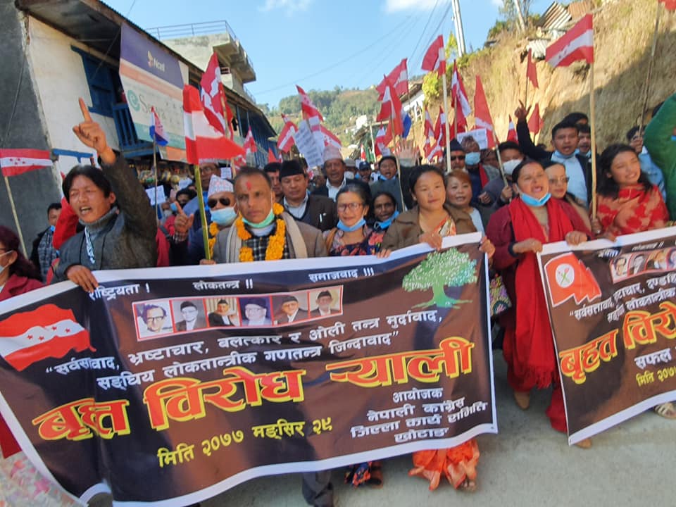 प्रमुख प्रतिपक्ष दल नेपाली कांग्रेसले २९ गते सोमबार देशका सबै जिल्लाहरुमा एक साथ विरोध प्रदर्शन गरेको थियो ।