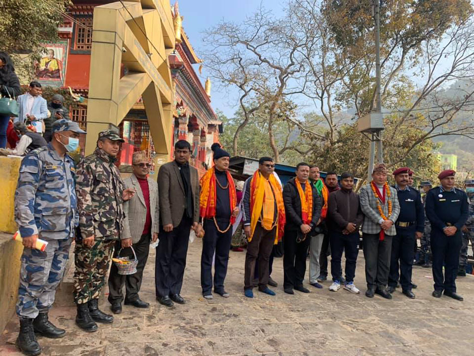 खोटाङ, २५ पुस । गृहसचिव महेश्वर न्यौपानेसहित सुरक्षा निकायका प्रमुखहरुले खोटाङको त्रिधार्मिकस्थल हलेसीको दर्शन गर्नुभएको छ । गृहसचिव न्यौपाने, नेपाल प्रहरीका महानिरीक्षक शैलेश थापा क्षेत्री, सशस्त्र प्रहरी बलका महानिरीक्षक शैलेन्द्र खनाल, राष्ट्रिय अनुसन्धान विभाग प्रमुख गणेशप्रसाद अधिकारी लगायत सुरक्षा निकायमा प्रमुखहरुले शनिबार हलेसीको दर्शन गर्नुभएको हो ।