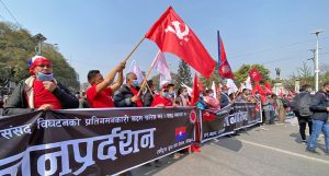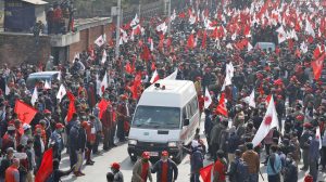 काठमाडौँ, ९ माघ । संसद विघटनको विरोधमा प्रचण्ड–माधव नेपाल समूहले काठमाडौंमा शक्ति प्रदर्शन गरेको छ । काठमाडौं उपत्यकाका वरिपरिका जिल्लाबाटसमेत कार्यकर्ता उतारेर प्रचण्ड–माधव समूहले राजधानीमा शक्ति प्रदर्शन गरेको हो ।