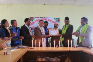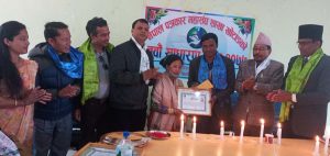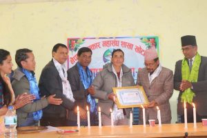 खोटाङ, २५ माघ । नेपाल पत्रकार महासङ्घ खोटाङ शाखाले जिल्लामा क्रियाशील पत्रकारद्वय सन्तोष पौडेल र सुनिता राई ‘कृष्णकला’लाई पुरस्कृत गरेको छ । पत्रकार महासङ्घको नवौँ साधारणसभा उद्घाटन कार्यक्रममा पौडेल र राईलाई नगद रु दुई हजार ५०० सहित क्रियाशील पत्रकारिता पुरस्कार प्रदान गरिएको हो ।
