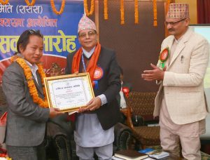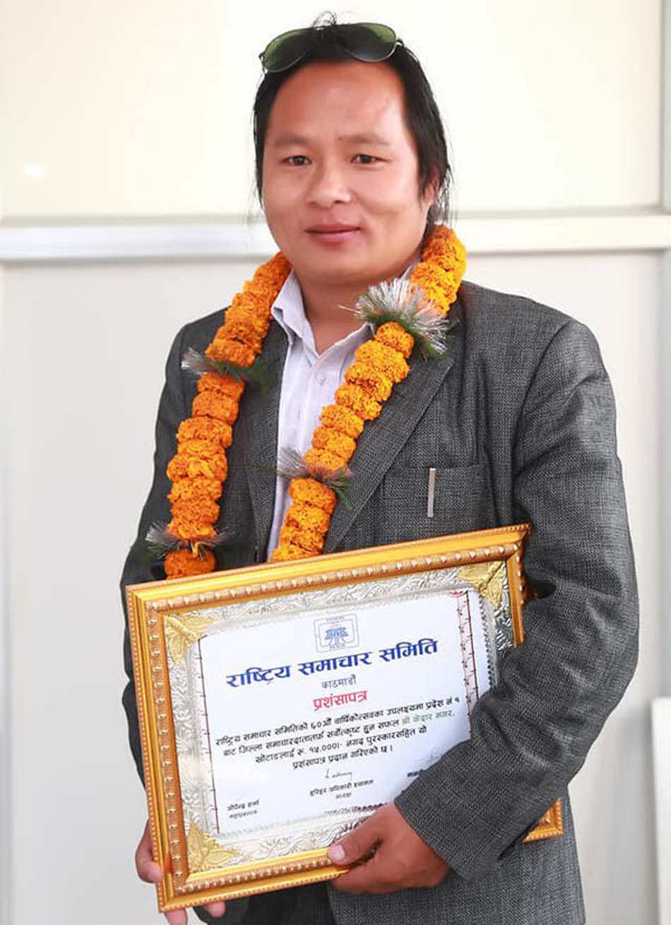 खोटाङ, ७ फागुन । नेपाल आदिवासी जनजाति पत्रकार महासङ्घ (फोनिज)का केन्द्रीय सदस्य पत्रकार केदार मगर राष्ट्रिय समाचार समिति (रासस)को १ नं. प्रदेश उत्कृष्ट सम्वाददाताका रुपमा पुरस्कृत हुनुभएको छ । बिगत दश वर्षदेखि राससको खोटाङ सम्वाददाता भएर काम गर्दै आउनुभएका केन्द्रीय सदस्य मगर शुक्रबार आयोजना गरिएको राससको ६० औँ वार्षिक उत्सवको अवसरमा दोस्रो पटक पुरस्कृत हुनुभएको हो ।