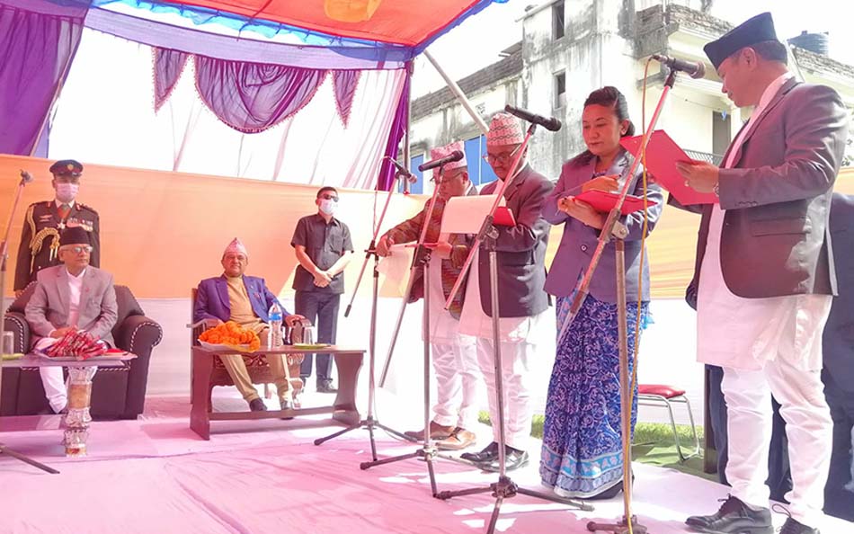 विराटनगर, १३ चैत । प्रदेश १ सरकारका नवनियुक्त मन्त्रीहरुले शपथ खाएका छन् । आर्थिक मामिला तथा योजनामन्त्री टंक आङबोहाङ, सामाजिक विकासमन्त्री उषाकला राई, भूमि व्यवस्था कृषि तथा सहकारी राज्यमन्त्री राम राना, भौतिक पूर्वाधार राज्यमन्त्री अम्बिरबाबु गुरुङले सपथ खाएका हुन् ।