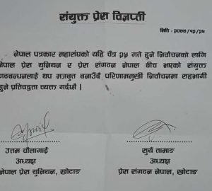 नेपाल प्रेस युनियन र प्रेस सङ्गठन नेपालले जारी गरेको संयुक्त विज्ञप्ती ।