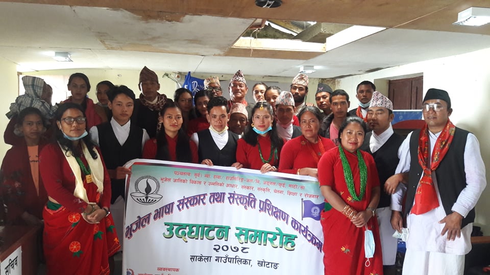खोटाङ,२५ असार । खोटाङको साकेलामा भुजेल भाषा संस्कार-संकृति (पुजारामे) को चारदिने प्रशिक्षण तालिम सम्पन्न भएको छ । कोरोना कहरका विचमा जनस्वास्थ्यको मापदण्ड अपनाई भुजेल भाषा संस्कार-संकृति पहिचान गरी जिल्लामा भुजेल भाष संस्कार-संस्कृतिलाई जिल्ला भित्तत्र्याउने उद्देश्यकासाथ (पुजारामे)को प्रशिक्षण कार्यक्रम सञ्चलन गरेको हो ।