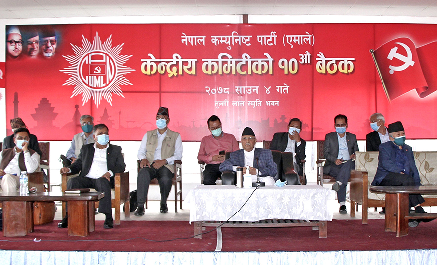 च्यासलस्थित तुलसीलाल स्मृति प्रतिष्ठानमा मंगलबार बसेको केन्द्रीय कमिटी बैठकको सुरुमा १० बुँदे सहमति जुटाएको कार्यदलमा ओली पक्षको संयोजक सुवास नेम्वाङले रिपोर्टिङ गरेका थिए । नेताहरुको ठूलो पहलका बाबजुद नेता नेपालको नकारात्मक भूमिका कारण पार्टी एक बनाउन नसकिएको उनले बताए । अध्यक्ष ओलीले पनि नेता नेपाललाई स्वागत गर्न घुँडा टेकेर हात फैलाएर बसेको तर घुँडामा पाइन्ट प्वाल पर्दा पनि नआएको उनले बताए । उनले भनेका छन्, ‘हाम्रो प्रयास अहिले पनि जारी छ ।’