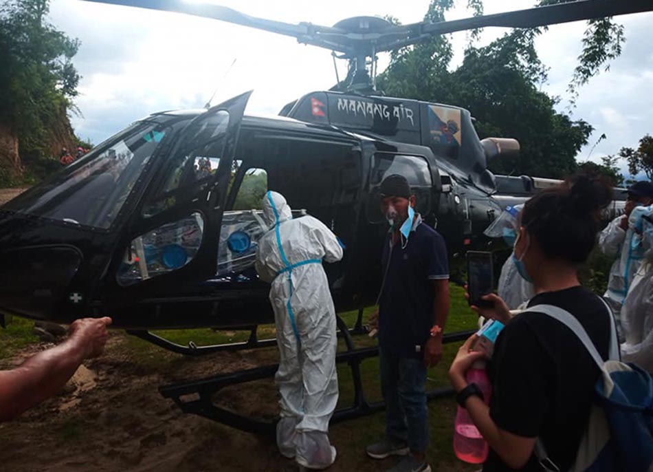 गत जेठ–५ गतेभन्दा यता मात्र सङ्क्रमितलाई अस्पताल लैजान नौँ पटक हेलिकोप्टर चार्टर भइसकेका छन् । गत असार–८ गते ऐसेलुखर्क गाउँपालिका–३ का ६० वर्षीया सङ्क्रमित वृद्धालाई रु दुई लाख ९५ हजारमा हेलिकोप्टरमार्फत काठमाडौँ लगिएको थियो ।