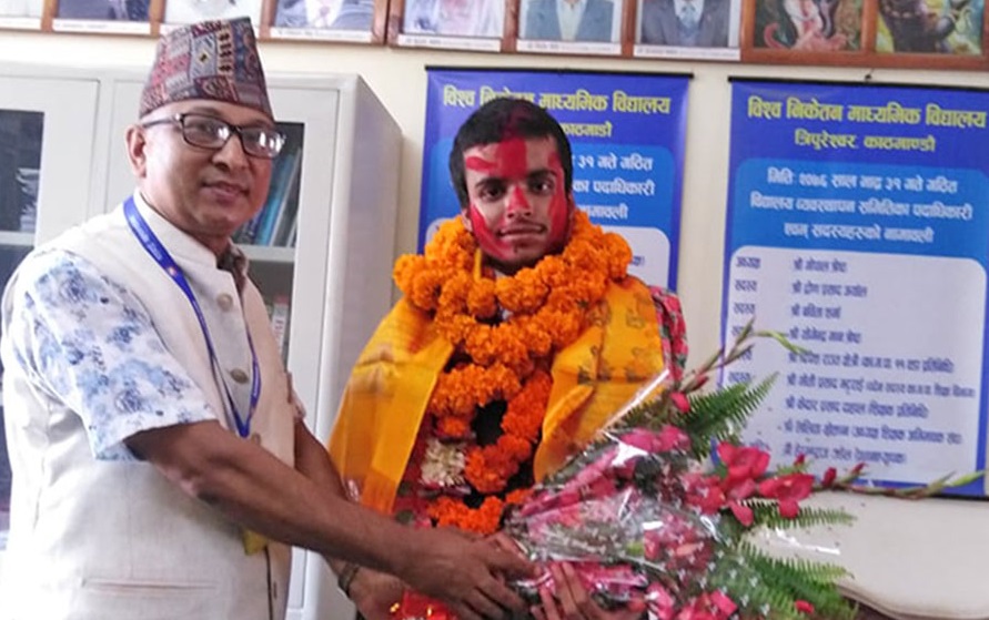 विस २०७७ सालमा विश्व निकेतन माविमा विज्ञानको वायोगुप्र लिएर उत्तीणर् झाले पुतलीसडकस्थित ‘भाइब्रेन्ट एमबीबीएसइन्ट्रान्स प्रिपिरेशन सेन्टर’बाट भाइब्रेन्टको अनलाइन कक्षामार्फत र मोवाइल एपमार्फत अध्ययन गरेर सर्वोकृष्ट अङ्क ल्याएका हुन् । भाइब्रेन्ट विस २०६८ मा स्थापना भएको शैक्षिक संस्था हो ।विद्यालयका प्रधानाध्यापक हेरम्बराज कडेल सरकारी विद्यालयमा पढेर एमबीबीएसपरीक्षामा सर्वोकृष्ट अङ्क ल्याउनु विद्यालयका लागि खुशीको कुरा भएको बताए । काठमाडौँ महानगरपालिका-११ मा सञ्चालित विश्व निकेतन माविमा हाल तीन हजारभन्दा बढी विद्यार्थी अध्ययनरत छन् ।