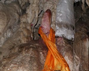 ढङ्गैढुङ्गाले बनेको प्राकृतिक पहाराको फेदमा रहेको मुल गुफाभित्र शिव पार्वतीको मुर्ति रहेको छ । प्राकृतिक हिसाबले बनेको शिवको आकृति, शिव लिङ्ग र पार्वतीको मुर्तिमा स्तनसमेत स्पष्ट देख्न सकिन्छ । योसँगै जोडिएका अर्को गुफामा बौद्ध धर्मावलम्बीको छ्र्योतेन माने पनि छ ।
