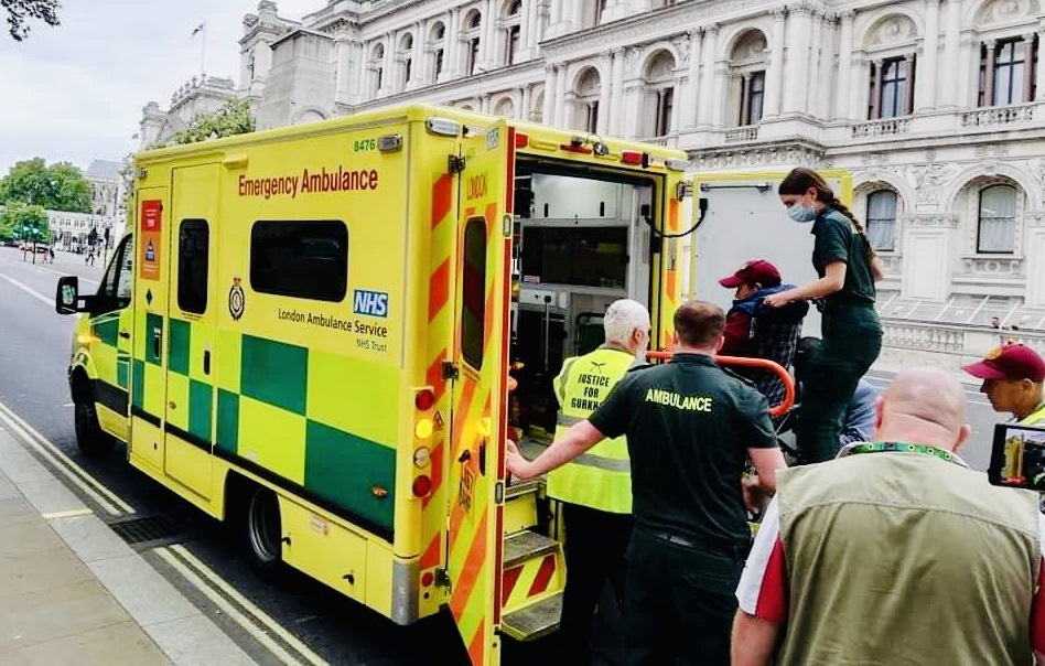लन्डन । १२ दिनदेखि बेलायती प्रधानमन्त्रीको कार्यालय अगाडि आमरण अनसन बस्दै आएका अनसनकारीमध्येका एकजना अभियन्ता धन गुरुङको स्वास्थ्यमा समस्या उत्पन्न भएपछि एम्बुलेन्स बोलाएर मंगलबार साँझ अस्पताल लगिएको छ ।