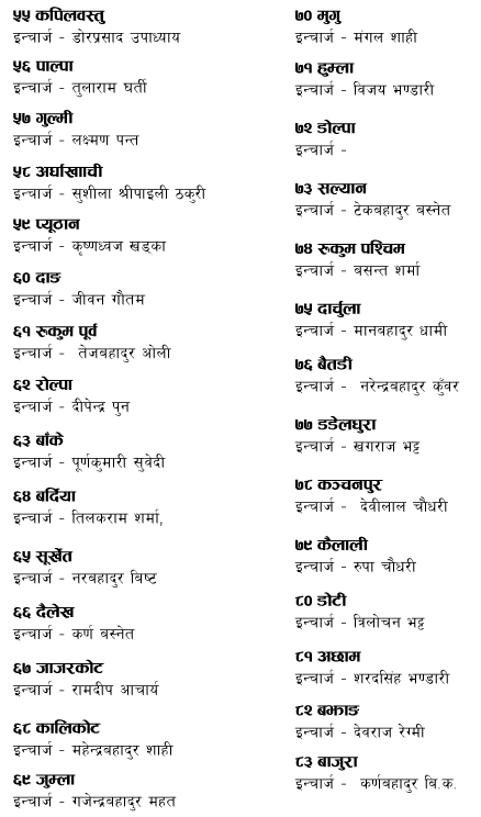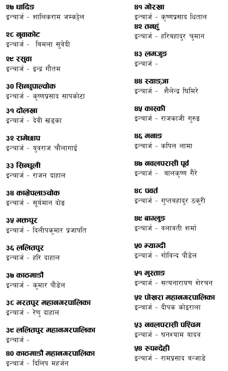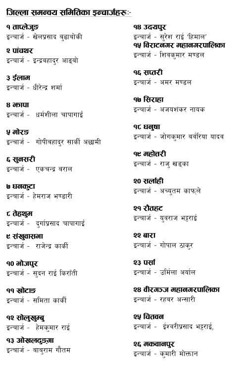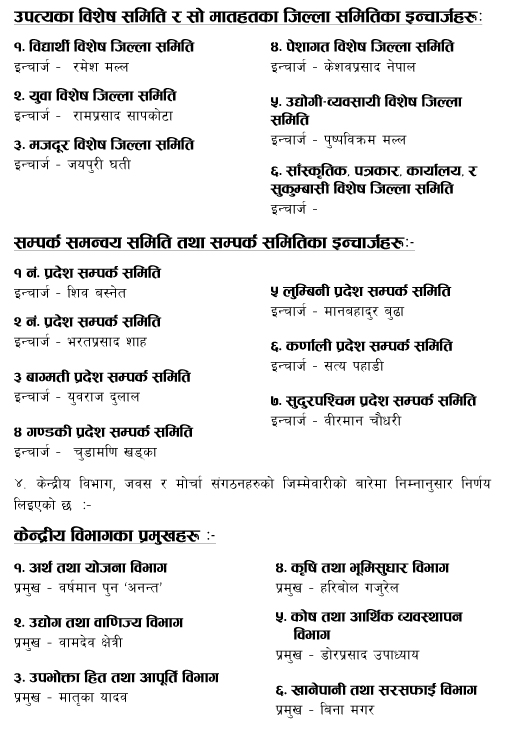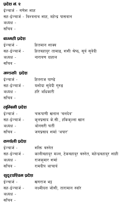 कुन नेताले कहाँको जिम्मेवारी पाए ?