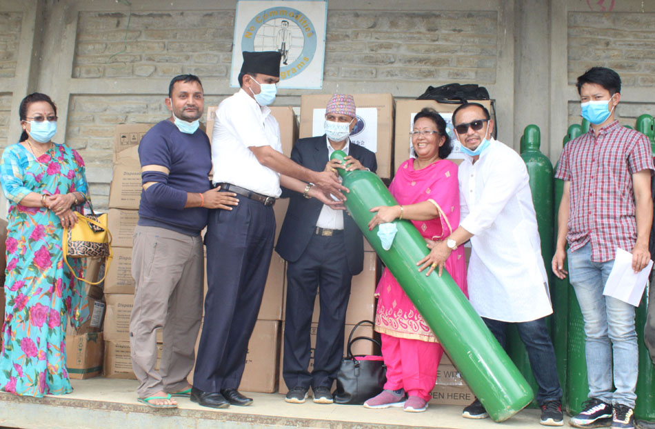 स्वास्थ्य तथा जनसंख्या मन्त्रालयबाट जुटाइएको अक्सिजन सिलिण्डर, पल्स अक्सिमिटर, एन्टीजेन किट, गाउन सेट, मास्क, ग्लोब्स लगायतका स्वास्थ्य सामग्री बुधबार काँग्रेस महासमिति सदस्य राई र संविधानसभा सदस्य एवम् महासमिति सदस्य सरस्वती बजिमयले जिल्ला स्वास्थ्य कार्यालयका प्रमुख पुण्यप्रसाद सिग्देललाई हस्तान्तरण गर्नुभयो । स्वास्थ्य तथा जनसंख्या मन्त्रालय स्वास्थ्य सेवा विभागबाट दश हजार वटा एन्टीजेन किट, ५० वटा पल्स अक्सिमिटर, ५० लिटर क्षमताको २५ वटा अक्सिजन सिलिण्डर र १०० वटा नजल अक्सिजल ट्यूव ल्याइएको छ ।