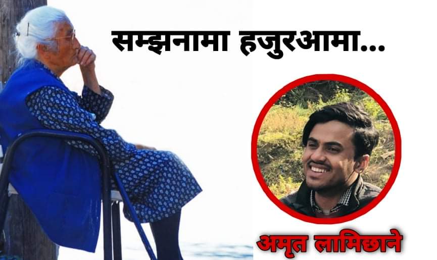 अचेल तपाईली सम्झेर आँखा रसाउदा मलाई एउटा बिचार आँउछ । कि हामि भगवानको लागि रुन पाएका छौ ? भगवानको कुने परिभाषा छ भने तपाई भन्दा त्यो भगवान पक्कै महान छैन होला । मेले त हजुरआमा बिनाको मामाघर देखेको छैन । अब बानि पनि त पार्नु पर्ला, त्यो घर, आँगन, अँगेको, फलैचा दलिन जता गएपनि तपाई त्यहि त हुनुहुन्छ होला । तपाई जहाँ भएनि हामि माथि कृपा राख्नुस है ।