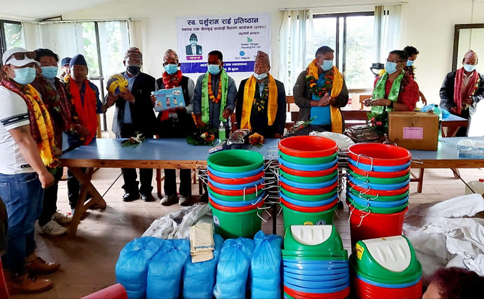 खोटाङ, ४ असोज । पर्शुराम राई स्मृति प्रतिष्ठानले जिल्लाका दशवटै स्थानीय तहमा सञ्चालित विद्यालयलाई स्वास्थ्य तथा खेलकुद सामग्री वितरण अभियान शुरु गरेको छ । प्रतिष्ठानले कोभिड–१९ को महामारीले बन्द भएका विद्यालयहरु सञ्चालनमा आएसँगै कोभिड–१९ को सङ्क्रमण नियन्त्रण गर्न स्वास्थ्य सामग्री र बालबालिकालाई विद्यालय जान प्रेरित गर्न खेलकुद सामग्री वितरण अभियान शुरु गरेको हो ।