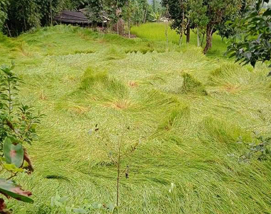खोटाङ, ३१ असोज । खोटाङमा बाला झुलेर पाक्न लागेको धानमा शनिबार बेलुकादेखी आएको वर्षा र हावाहुरीका कारण क्षति पुगेको छ । जिल्लाका अधिकांश क्षेत्रमा धानबाली लगायत विभिन्न नगदेबाली तथा परम्परागत बालीहरुमा क्षती पुगेको हो ।