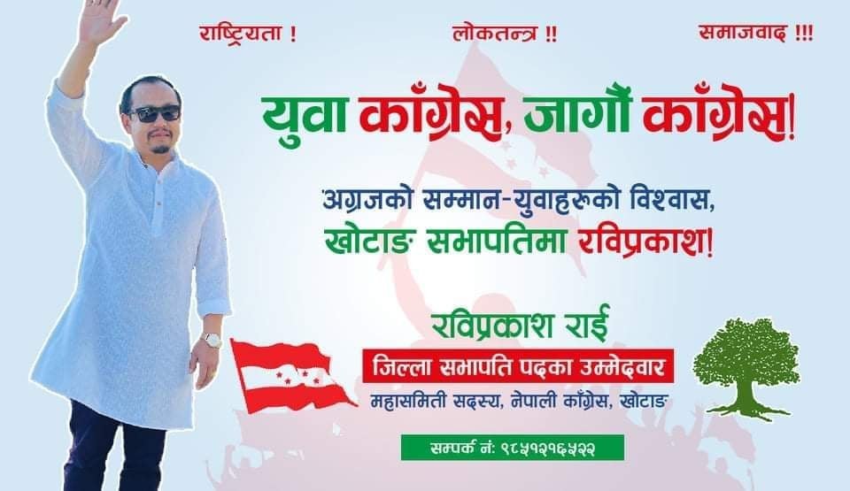 सभापतिमा उम्मेद्वारी दिने तयारी सँगै राईका समर्थकले सामाजिक सञ्जालमार्फत पक्षमा प्रचार-प्रसार सुरु गरेका छन् । ‘अग्रजको सम्मान-युवाहरुको बिश्वास, खोटाङ सभापतिमा रविप्रकाश!’ भन्ने नारा लिएर राई सभापतिको चुनावी दौडमा अघि सरेका हुन् । अन्य पदाधिकारीको केही दिनपछि टुंगो लगाइने सभापतिका उम्मेद्वार राईले बताए । उनी केन्द्रमा सभापति शेरबहादुर देउवासँग नजिक मानिन्छन् ।