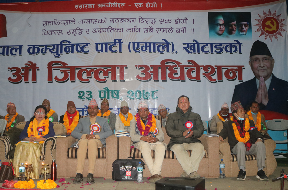 खोटाङ, २३ पुस । नेकपा एमाले खोटाङको सातौँ जिल्ला अधिवेशन अन्तरगत बेलुका सात बजेबाट बन्दसत्र शुरु भएको छ । दिक्तेलस्थित खोटाङ बहुउद्देश्यीय कभर्डहलमा जारी बन्दसत्रमा अहिले राजनीतिक, साँगठानिक, आर्थिक र विकास तथा समृद्धि प्रतिवेदन प्रस्तुत गर्ने काम भइरहेको जनाइएको छ ।