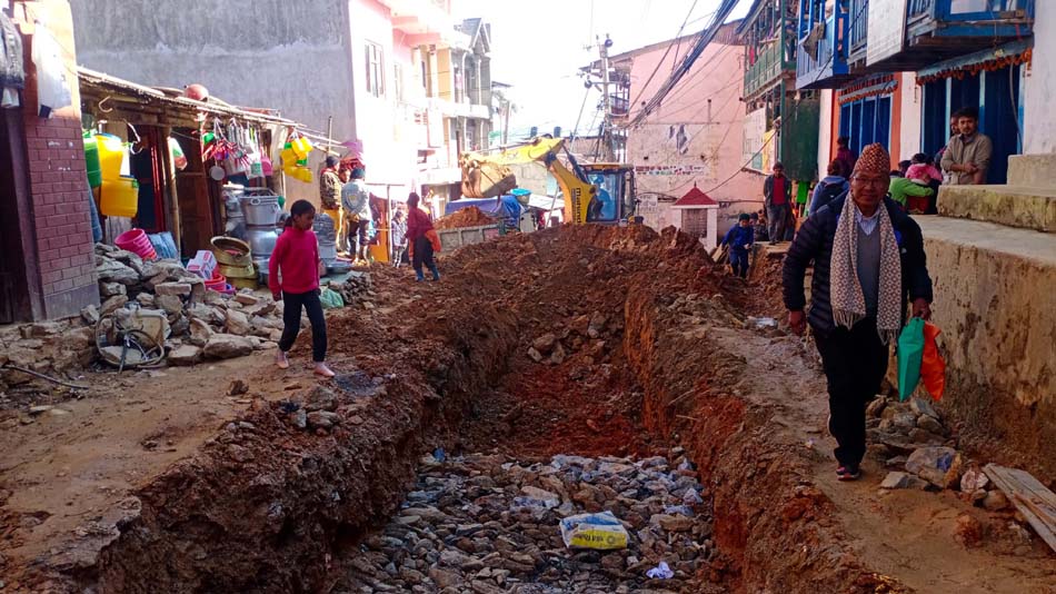 निर्माण कम्पनीले मानव अधिकार चोकबाट बेस क्याम्पसम्मको खण्डमा गत असोज–२२ गते राति ढलान सकेको थियो । बेस क्याम्पदेखि नेपाल टेलिकमसम्मको सडक ढलान गर्न फराकिलो पार्न थालिएपनि अपेक्षित काम भएको छैन ।