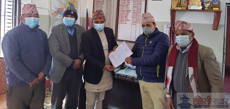 ध्यानाकार्षणपत्र बुझाउन एमाले खोटाङका सचिव कुमार आचार्य, सह-सचिव दीपनारायण रिजाल र सुरेन्द्रकुमार राई प्रशासन पुग्नुभएको थियो ।
