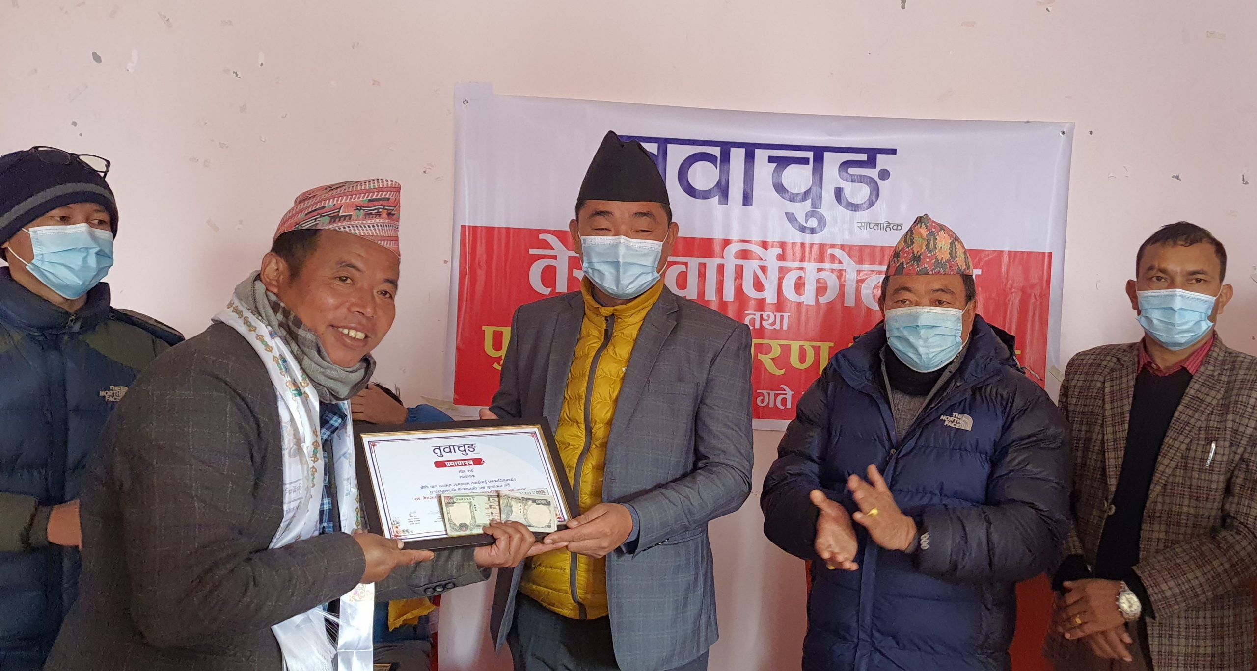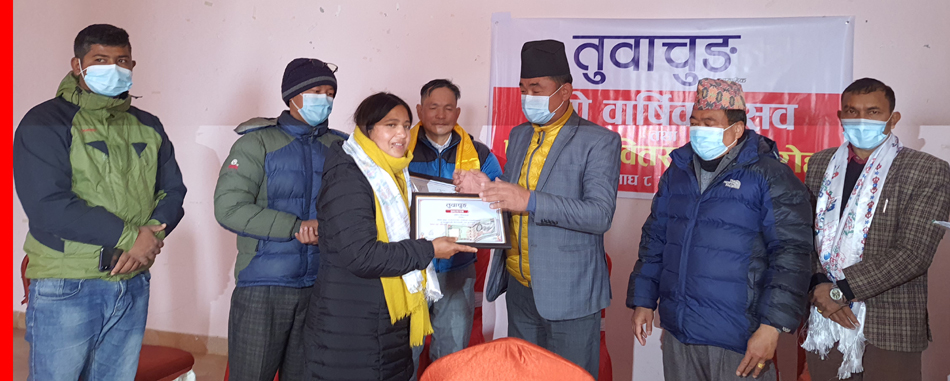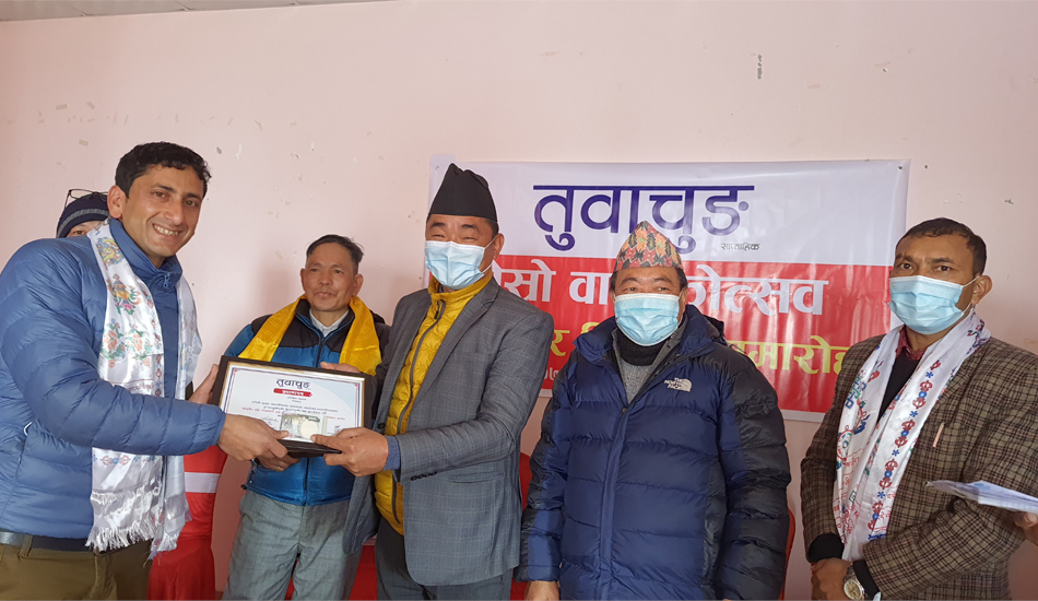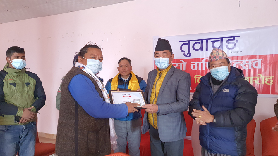 यस्तै, वार्षकउत्सवकै अवसरमा तुवाचुङ सापताहिकले उद्यमी-व्यवसायी रामप्रसाद राईलाई अभिनन्दन गरेको छ । समाजसेवी जनकराज राई, बेलायती गोर्खा सैनिक भविन्द्र राई, उद्यमी/व्यवसायी कैलाश राई, राजनीतिकर्मी कमल गिरी र किस्मत राई, शिक्षिका तारा राई, कमल कार्की र हलेसी तुवाचुङ नगरपालिकालाई प्रमाणपत्रले सम्मान गरिएको जनाइएको छ ।