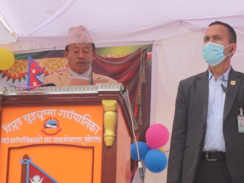 खोटाङ, ८ चैत । खोटाङस्थित दिप्रुङ चुइचुम्मा गाउँपालिका प्रमुख एवम् नेपाली काँग्रेस- १ का समितिका महामन्त्री भूपेन्द्र राईले प्रधानमन्त्री देउवा समक्ष जिल्लाको समग्र विकासका लागि पाँच बुँदे मागपत्र पेश गर्नुभएको छ । सोमबार दिक्तेल रुपाकोट मझुवागढी नगरपालिका-४ खाल्ले र दिप्रुङ चुइचुम्मा गाउँपालिका-१ याम्खा जोड्ने बाटोफेदीस्थित साप्सु खोलाको नवनिर्मित मोटररेवल पक्कि पुल उद्घाटन पश्चात कार्यक्रमलाई प्रमुख राईले सम्बोधन गर्दै प्रधानमन्त्री देउवा समक्ष पाँच बुदे माग पत्र पेश गर्नुभएको हो ।
