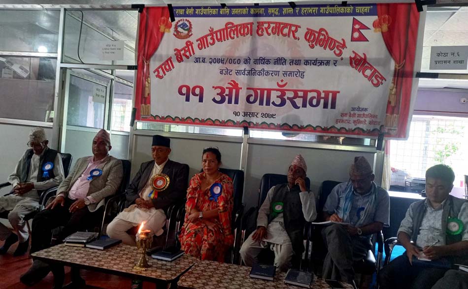 खोटाङ, १० असार । रावाबेँसी गाउँपालिकाले रु ३८ करोड ३९ लाख २ हजार २३ बराबरको बजेट तथा कार्यक्रम ल्याएको छ । शुक्रबार सम्पन्न ११ औं गाउँसभामा गाउँपालिका उपप्रमुख कौशिला गुरुङले आर्थिक वर्ष २०७९÷०८० का लागि बजेट तथा कार्यक्रम प्रस्तुत गर्नुभएको हो ।