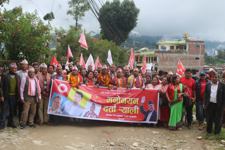 उम्मेदवारी दर्ता गराउन सत्ता गठबन्धनमा आवद्ध तीन राजनीतिक दलका साझा उम्मेदवारहरु कार्यकर्ता तथा साँस्कृत झाँकीसहितको ¥याली लिएर दिउँसो तीन बजे मुख्य निर्वाचन अधिकृतको कार्यालय पुगेको थियो । स्थानीय तहको निर्वाचनमासमेत चुनावी तालमेल गरेको तीन राजनीतिक दलका उम्मेदवारहरु उत्साहित देखिएका थिए ।