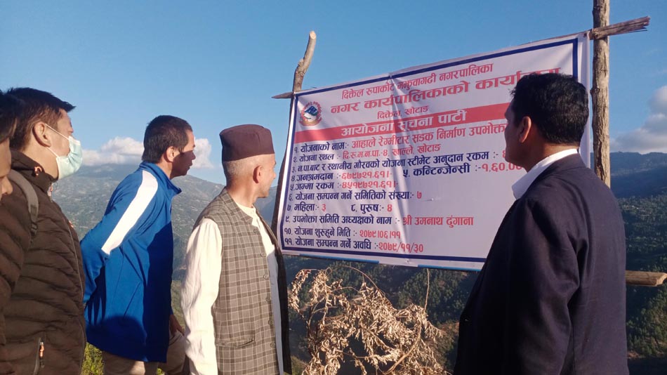 नगरप्रमुख भट्टराईले हाललाई प्राप्त बजेटबाट आहालेदेखि दिखुवाफेदीसम्म यातायात सञ्चालन हुनेगरी सडक स्तरोन्नति गर्न उपभोक्ता समितिलाई निर्देशन दिनुभएको छ । बाँकी नाली, ड्रेन तथा सोलिङका लागि पुनः बजेट व्यवस्थापन गर्ने नगरप्रमुख भट्टराईले आश्वशन दिनुभएको छ ।