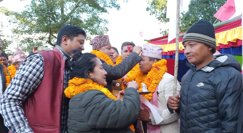 नवप्रवेशिहरूलाई नेकपा (एमाले) केन्द्रीय सदस्य एवम् खोटाङ जिल्ला सह-इन्चार्ज उषाकला राई, एमाले खोटाङका अध्यक्ष प्रदेशसभा ‘ख’ का उम्मेदवार रामप्रसाद दंगाल जिल्ला उप-सचिव दीपनारयण रिजाल सुनसरी जिल्ला कमिटी सदस्य कांसिनाथ दंगाल एमाले जिल्ला कमिटी सदस्य ओम प्रकाश घिमिरे लगायतले खादा माला लगाएर स्वागत गर्नुभएको थियो ।