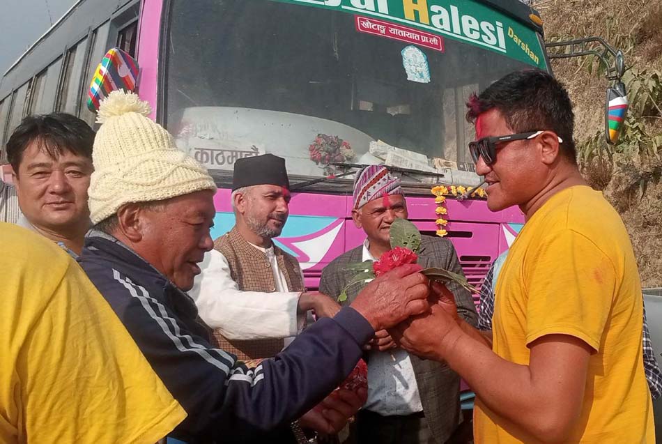 खोटाङ, ११ फागुन । जिल्लाको प्रमुख व्यापारिक केन्द्र दिक्तेल बजारस्थित अल्छेढुङ्गाबाट दोर्पाको दुम्ली हुँदै साकेला गाउँपालिकाको केन्द्र मानेभञ्ज्याङसम्म नियमित बस सेवा सञ्चालन भएको छ । गाउँपालिकासँगको सहकार्यमा खोटाङ यातायात प्रा.लि.को बसमार्फत आज (बिहीबार)बाट उक्त सडकखण्डमा नियमित सेवा सञ्चालन गरिएको हो ।