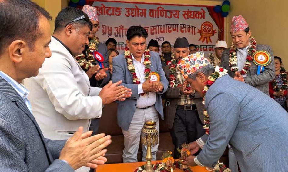 वाणिज्य सङ्घको अधिवेशन उद्घाटनसत्रलाई सम्बोधन गर्नुहुँदै नेकपा (माओवादी केन्द्र)का पोलिटब्यूरो सदस्य एवम् प्रतिनिधिसभा सदस्य रामकुमार राई ‘पासाङ’ले जिल्लाको विकासका लागि आग्रहपूर्वाग्रह त्यागेर खोटाङ बनाउन लागिपर्न आग्रह गर्नुभएको छ । “वार्षिक रु २५ करोडको निर्यात हुँदा १५ अर्बको आयत हुनु जिल्लाका लागि राम्रो सङ्केत होइन”, उहाँले भन्नुभयो, “खोटाङ अघि बढेमात्र हामी अघि बढ्न सक्छौँ । आग्रहपूर्वाग्रह राखियो भने विकास सम्भव छैन । खोटाङ बनाउन सबै आ–आफ्नो ठाउँबाट लागिपरौँ । विकास सम्भव छ ।”