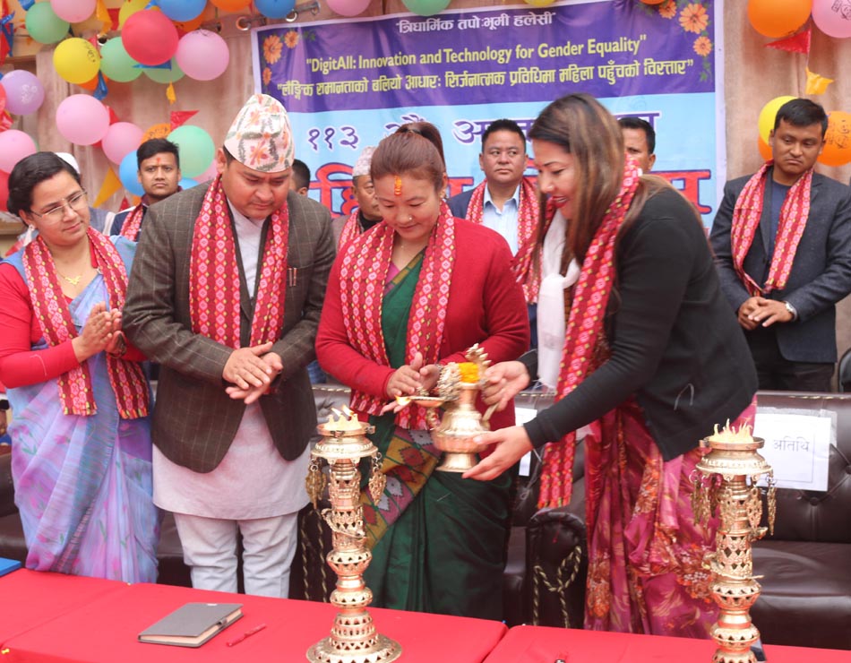 त्रिधार्मिकस्थल हलेसीको प्राङ्गण आयोजित कार्यक्रमलाई काँग्रेस नेतृ लक्ष्मी खतिवडा, प्रेरक वक्ता सुमी मानव, हलेसी तुवाचुङ नगरपालिकाका नगर प्रमुख विमला राई, उपप्रमुख रमेश राउत लगायतले सम्बोधन गर्नुभएको थियो । साँस्कृतिक झाँकीसहित आयोजित कार्यक्रममा नगरपालिकाले स्थानीय तहको निर्वाचनमा निर्वाचित महिला जनप्रतिधिलाई सम्मानसमेत गरेको थियो ।