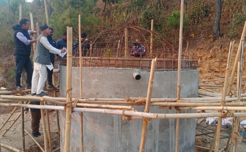 ट्रिटमेन्ट प्लान्टसहित मेनलाइनको ट्याङ्की निर्माणको काम अन्तिम चरणमा पुगेको ठेकेदार कम्पनीका इन्जिनियर सञ्जिव साहले जानकारी दिनुभयो । “स्वास्थ्यचौकीडाँडाभन्दा माथिको २० हजार लिटरको एउटा ट्याङ्कीमा समस्या देखिएको छ । त्यो भत्काएर अर्को निर्माण गर्ने तयारी गरिएको छ”, निर्माणस्थलमा पुगेका टोलीसँग उहाँले भन्नुभयो, “निर्माणाधीन अवस्थामा रहेका बाँकी पाँचवटा ट्याङ्की र पाइपलाइनको काम मापदण्ड अनुसार नै निर्माण गरेका छौँ । त्यसमा कुनै शङ्का गर्नुपर्ने ठाउँ छैन ।”