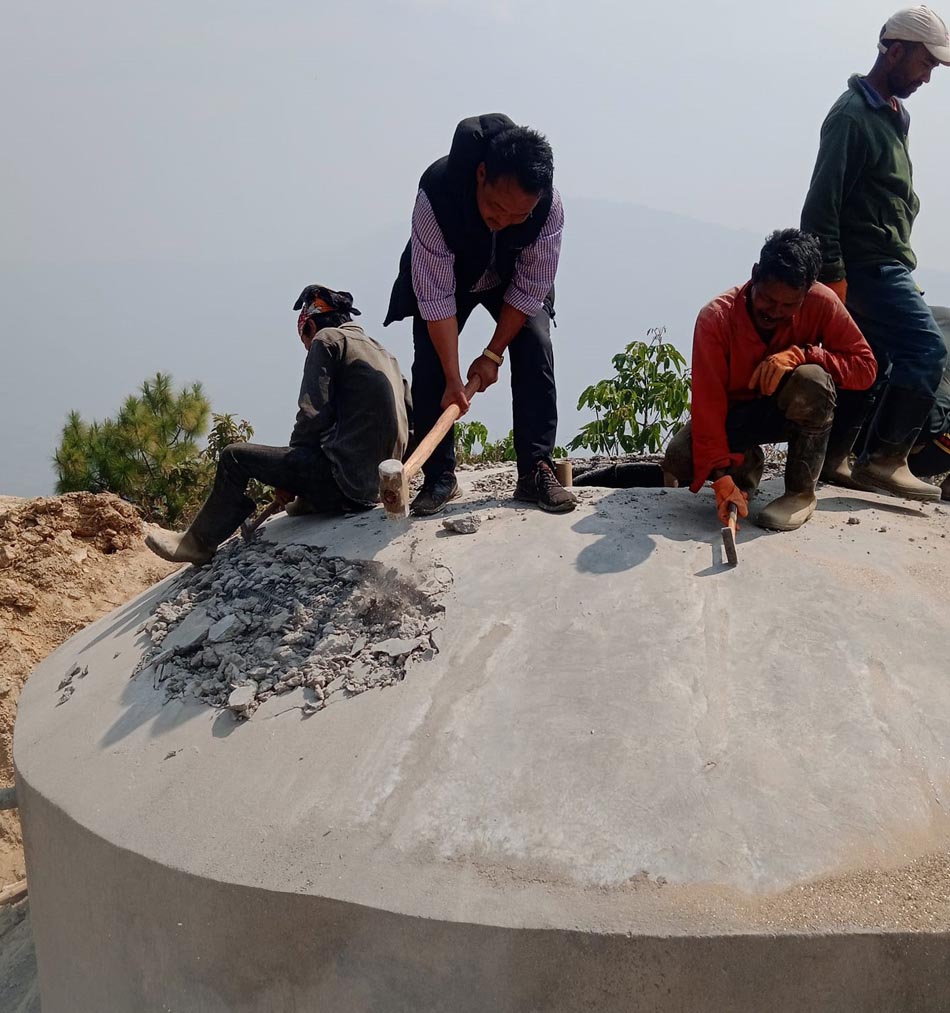 ट्याङ्की निर्माणका क्रममा खोलाको माटो मिसिएको बालुवा प्रयोग गरिएको, नियमित क्युरिङ (पानीले भिजाउने काम) नगरिएको स्थानीय नरेन्द्र ढकालले बताउनुभयो । “पहिलाको विस्तृत परियोजना प्रतिवेदन (डिपिआर) अनुसार ट्याङ्की निर्माण र पाईपलाइनको कामसमेत भएको छैन । सरकारी जग्गा छँदाछँदै व्यक्तिको जग्गामा कार्यालय भवन निर्माण शुरु गरिएको छ । सडक फराकिलो बनाउँदा काटिने ठाउँमा ट्याङ्की निर्माण गरिएको छ । उपभोक्ता समिति गठनसमेत एकलौटी गरियो”, उहाँले भन्नुभयो, “आयोजनाको काममा स्थानीयलाई काम गर्न दिइएन । सबै कामदार बाहिरबाट ल्याएर लगाइएको छ । हामीले शुरुबाटै गुणस्तर कायम गराउन लागिप¥यौँ । हाम्रो खबरदारीलाई उपभोक्ता समितिले बेवास्ता गर्दा यस्तो भयो ।”