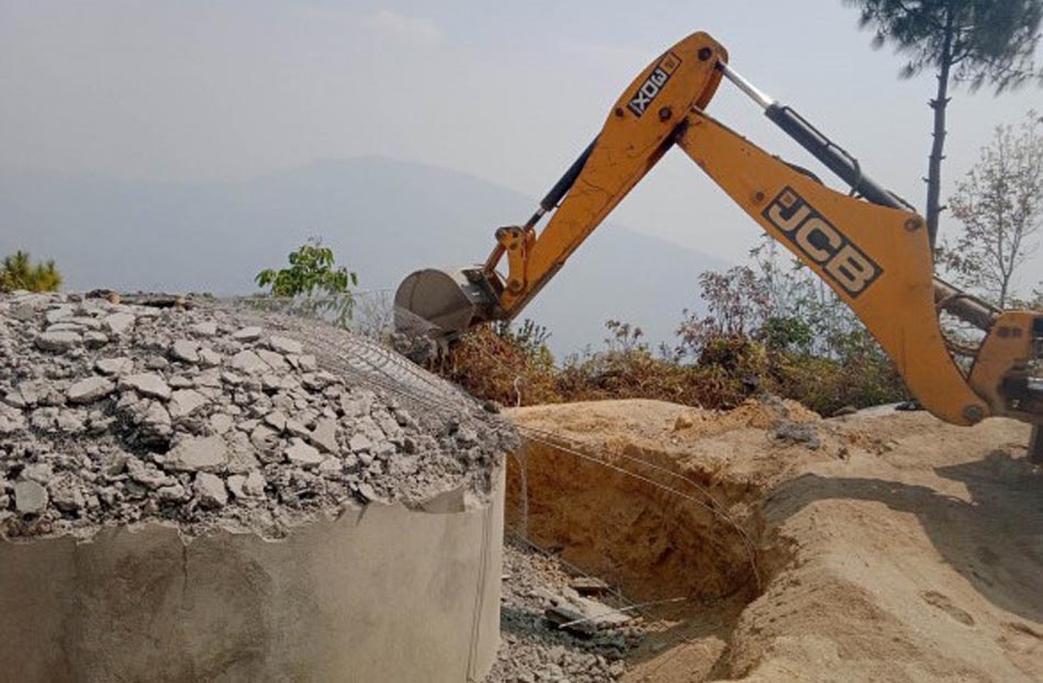 खोटाङ, २ चैत । दिक्तेल रुपाकोट मझुवागढी नगरपालिका–१५ विजयखर्कमा सञ्चालित ‘साप्सुखोला–विजयखर्क–बसेरी लिफ्टिङ खानेपानी आयोजना’को गुणस्तरहीन ट्याङ्की फुटाउन थालिएको छ । निर्माणाधीन खानेपानी आयोजनाको ट्याङ्की सम्पन्न नहुँदै चर्किएसँगै चौतर्फी बिरोध र आलोचना शुरु भएपछि वडा कार्यालय र उपभोक्ता समितिको रोहबरमा स्वयम् ठेकेदार कम्पनी सगरमाथा ड्रिलिङ एण्ड कन्स्ट्रक्सन कम्पनी प्रा.लि. काठमाडौँले ह्याम्मर र स्काभेटर लगाएर ट्याङ्की फुटाउन थालेको हो ।