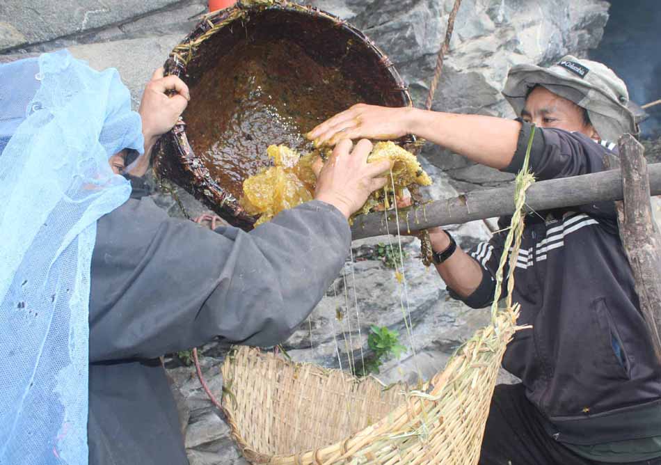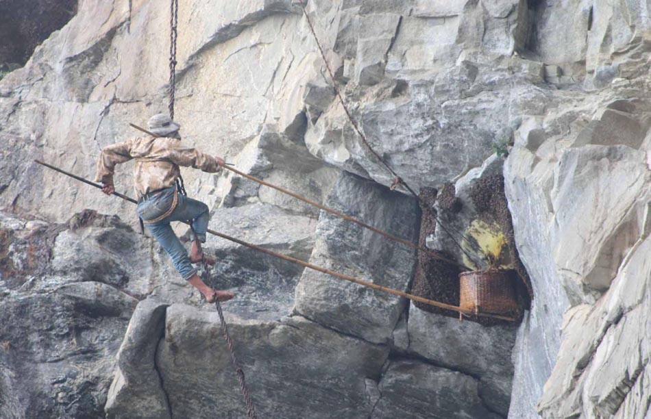 नाताले मामा÷भाञ्जा (हस्तराम मामा र तीर्थमनी भाञ्जा)ले प¥याङ (मालिङ्गोको चोया प्रयोग गरेर बनाइएको भ¥याङ)बाट अक्करे भीर (टेक्ने र समाउने दुवै ठाउँ नभएको अप्ठ्यारो भीर)मा चढेर जोखिमपूर्ण अवस्थामा मह काढ्ने पेसा गर्दै आउनुभएका छ । उनीहरूको साथमा सुतारे, दोभाषे (कोट भाषामार्फत सहकर्मीलाई जानकारी दिने व्यक्ति) र अन्य दर्जनबढी सहयोगीले पनि साथ दिँदै आएका छन् ।