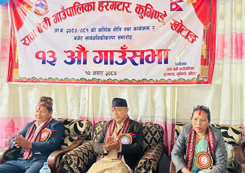 खोटाङ, ११ असार । रावाबेँसी गाउँपालिकाले आफ्नै पालिकाभित्र उत्पादित छालाको जुत्ता र खाडी कपडा विद्यार्थीको पोशाकको रुपमा प्रयोग गर्न÷गराउन जोड दिने भएको छ । गाउँपालिकाले आर्थिक वर्ष २०८०÷०८१ का लागि प्रस्तुत गरेको नीति तथा कार्यक्रममा स्थानीयस्तरमा उत्पादित छालाको जुत्ता र खाडी कपडा प्रवद्र्धन गर्नका लागि विद्यालय पोशाक योजना समावेश गरेको हो ।