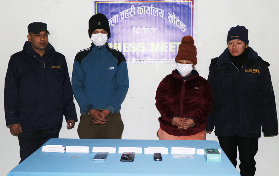 खोटाङ, १८ पुस । दिक्तेल रुपाकोट मझुवागढी नगरपालिका–१० पाथेकास्थित नाखामकी ३६ वर्षीय पवित्रा तामाङको हत्या आरोपमा सोही नगरपालिकाको वडा नं. १२ जालपाका ३३ वर्षीय दीपक श्रेष्ठ र उनकी श्रीमती २५ वर्षीया सिर्जना श्रेष्ठ (राई) पक्राउ परेका छन् । गत मङ्सिर–१९ गतेदेखि बेपत्ता बनेकी पवित्रा घरदेखि करिब १५ मिनेट पैदल दूरीमा रहेको गोठमा यही पुस–३ गते शङ्कास्पद अवस्थामा मृत फेला परेपछि प्रहरीले पवित्राको हत्या आरोपमा श्रेष्ठ दम्पतीलाई पक्राउ गरेको हो ।
