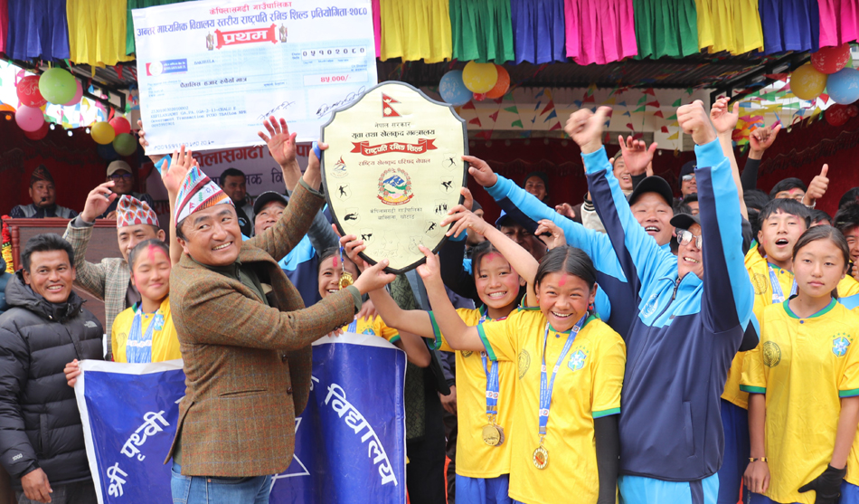खोटाङ, ७ माघ । केपिलासगढी गाउँपालिकामा सम्पन्न पालिकास्तरीय अन्तर माध्यमिक विद्यालय राष्ट्रपति रनिङ शिल्ड प्रतियोगिताको उपाधि पृथ्वी मावि बाक्सिलाले उचालेको छ । बाक्सिलास्थित पृथ्वी माविको आफ्नै खेलमैदानमा सम्पन्न प्रतियोगितामा २३ स्वर्ण, दश रजत र सात कास्य पदकसहित उपाधि उचालेको हो ।